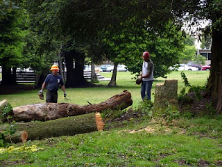 complaints from neighbors). Whatever the cause, the change is welcome and reduces an eyesore. Even the big trucks that entered the park last week with porta-potties and trash containers didn't leave much evidence of damage.